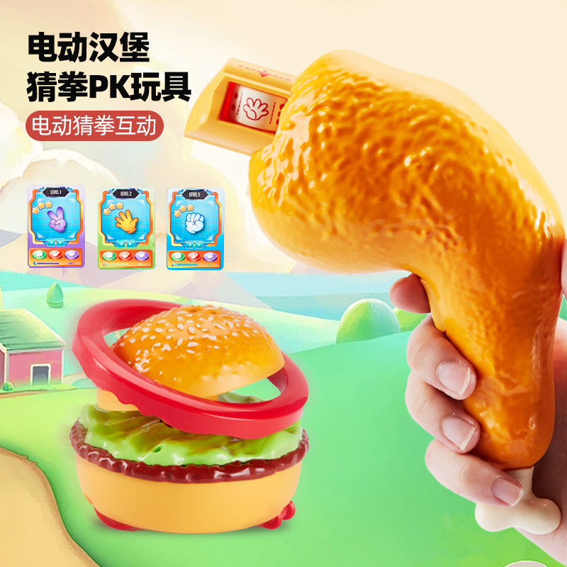 儿童汉堡红外线遥控玩具音乐灯光亲子互动趣味PK猜拳鸡腿仿真套装