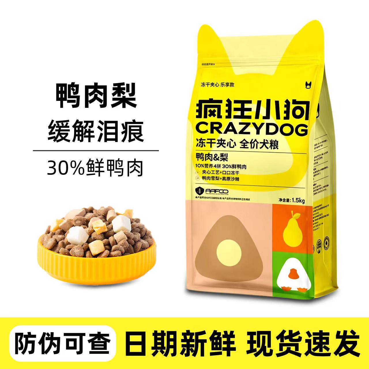 疯狂小狗冻干夹心狗粮1.5kg鸭肉梨鸡肉益生元兔肉牛肉小耳朵犬粮