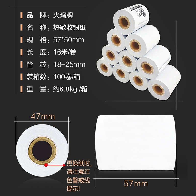 火鸡三防热敏收银纸57*50外卖打单纸超市小票打印纸贴纸厂家批发