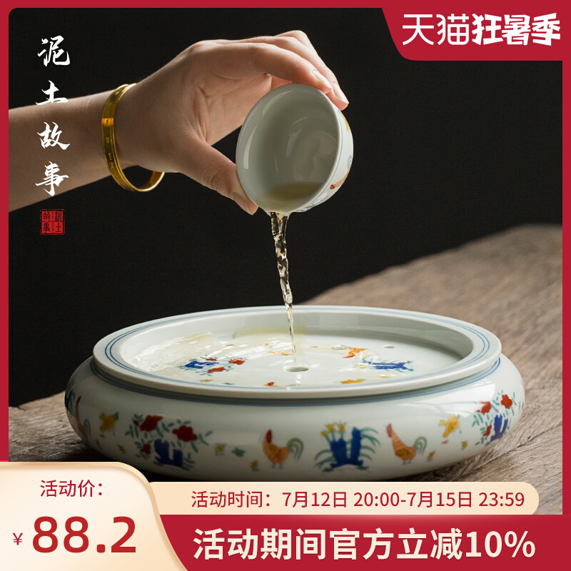 景德镇斗彩鸡缸杯干泡茶盘家用陶瓷茶托盘储N水茶海复古小茶台茶