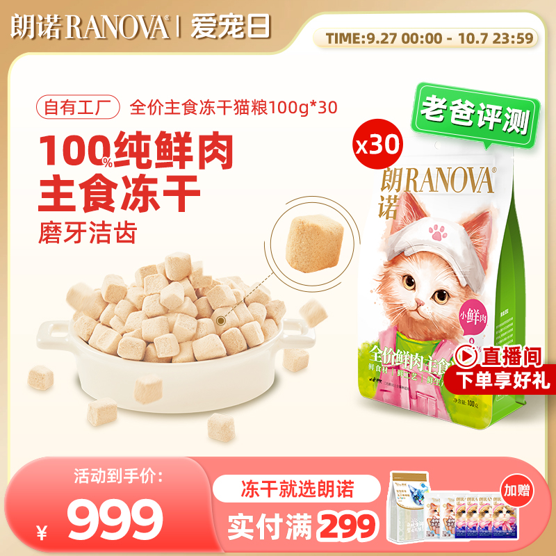 朗诺小鲜肉主食冻干鸡肉成猫幼猫宠物猫主粮囤货装100g*30袋