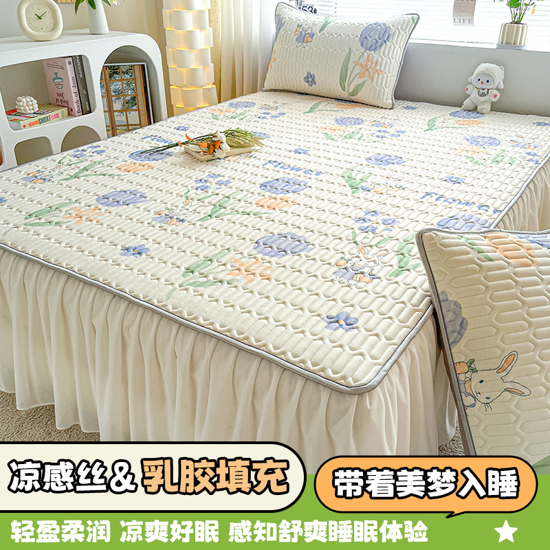 A类夏季新款乳胶冰丝凉席三件套可机洗床裙款软席子空调床罩垫