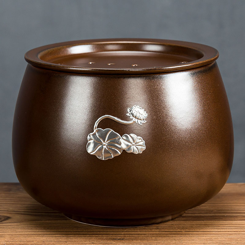 茶渣缸茶洗家用茶洗带盖茶钵复古建水钵型茶渣桶水孟大号杯水洗陶