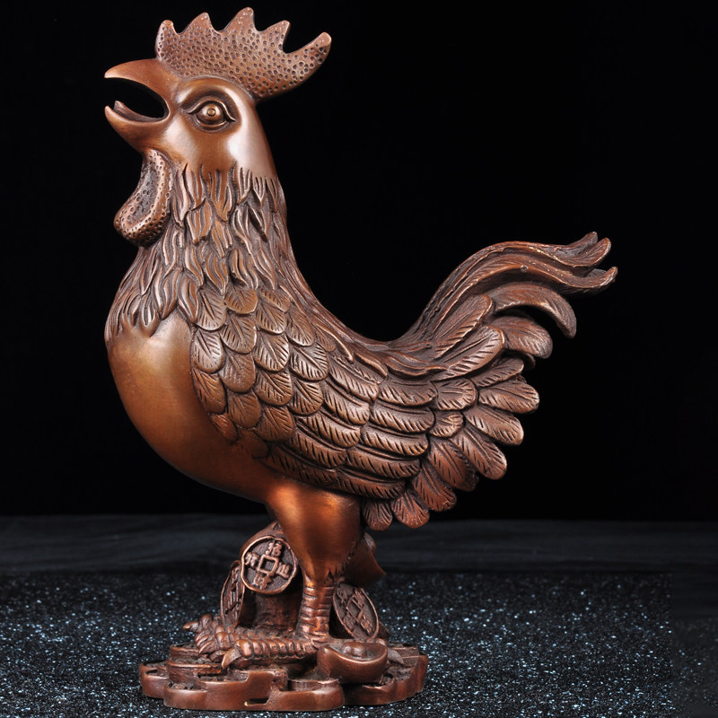 紫铜金钱鸡摆件招财大公鸡生肖铜鸡大吉大利家居客厅酒柜装饰品