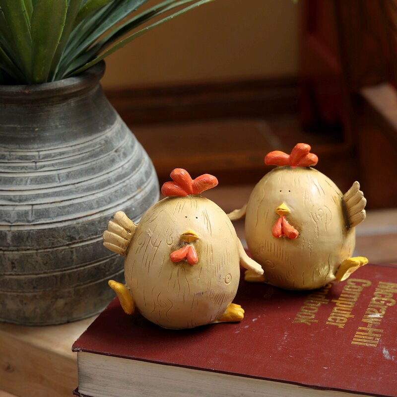 创意卡通可爱胖胖情侣鸡多多仿真木纹复古树脂橱窗家居装饰摆件