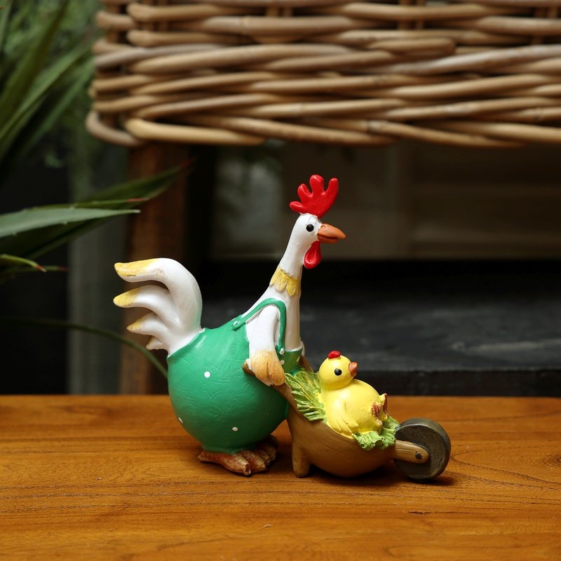 可爱卡通乡村田园风卡哇伊推小鸡的绿背心鸡妈妈花园桌面装饰摆件