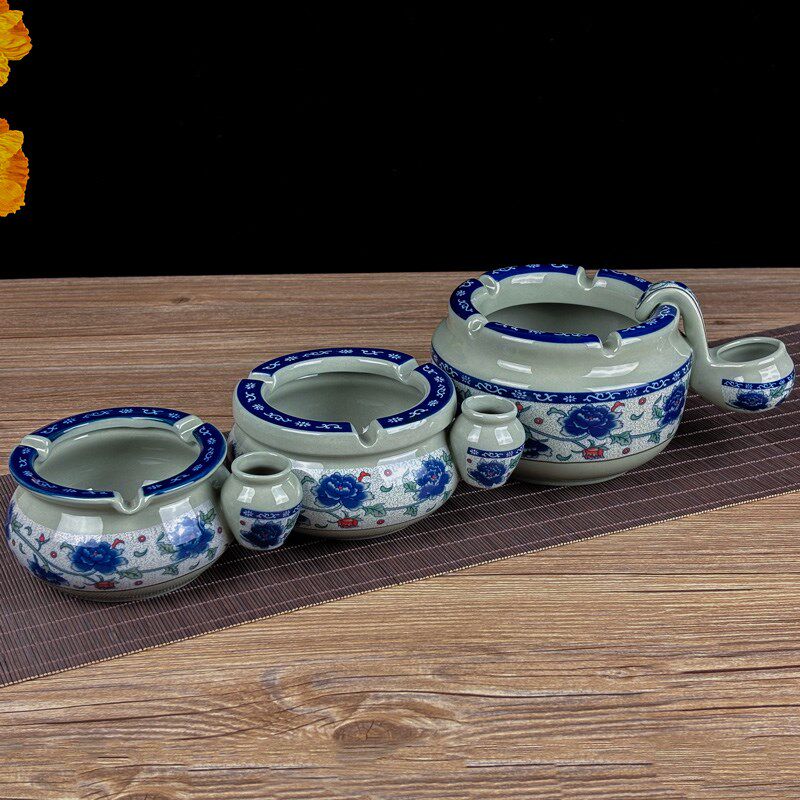 青瓷防飞烟灰缸创意个性烟盅客厅奢华陶瓷烟灰盅