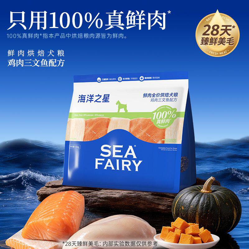 海洋之星低温烘焙鲜肉犬粮鸡肉三文鱼美毛后生元益肠胃1.5kg装
