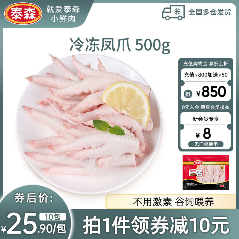 Tyson泰森凤爪去棍鸡爪短爪500g*8新鲜冷冻泡椒酸辣柠檬鸡爪原料
