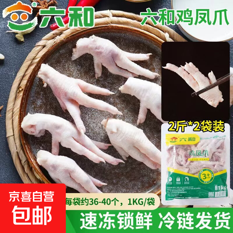 生鲜鸡凤爪冷冻整箱大号凤爪新鲜卤味鸡肉食材 重量 六和鸡凤爪1kg*2袋【共4斤】