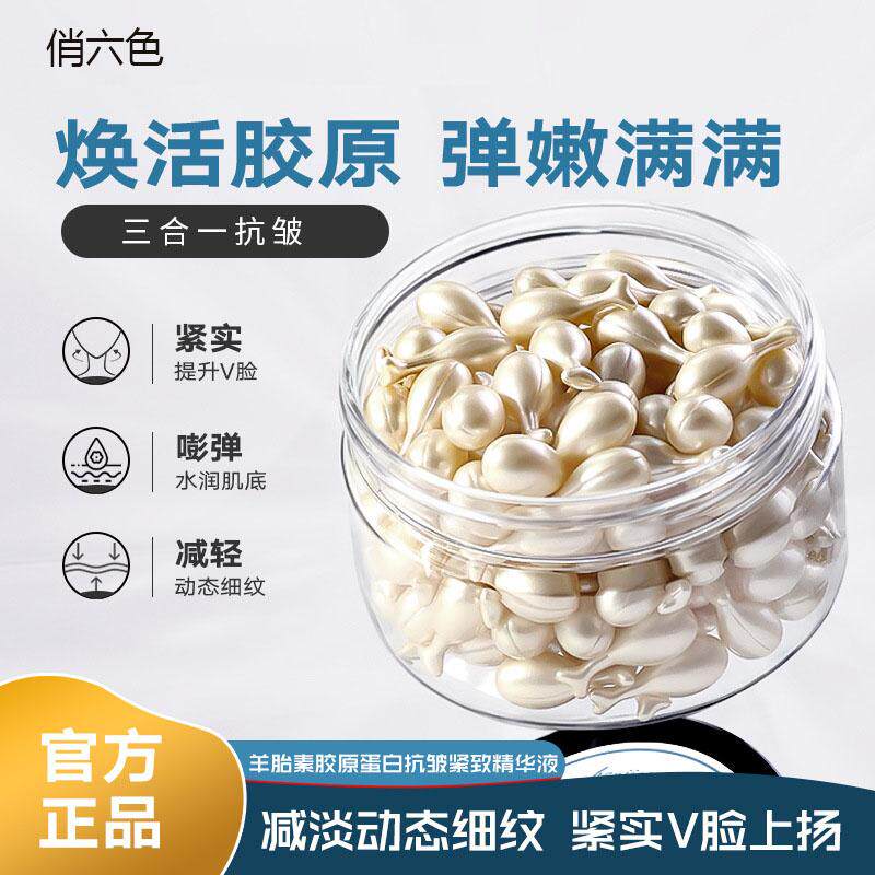 俏六色富勒烯胶原蛋白胎盘胶囊精华原液小鸡腿精华液抗皱保湿正品