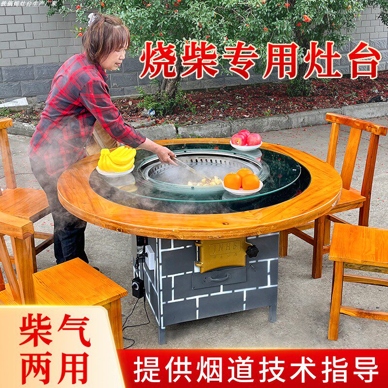 饭店商用柴火鸡铁锅炖竈台桌柴火竈土竈台地锅竈下排烟烧柴排风
