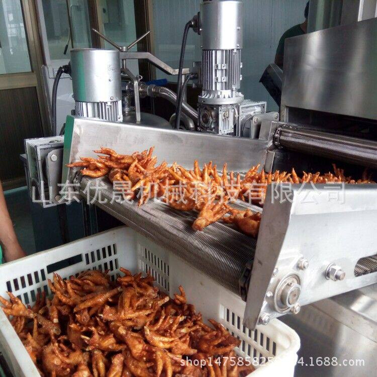 优晟网带式油炸流水线 连续式虎皮鸡爪油炸线 全自动小龙虾油炸线