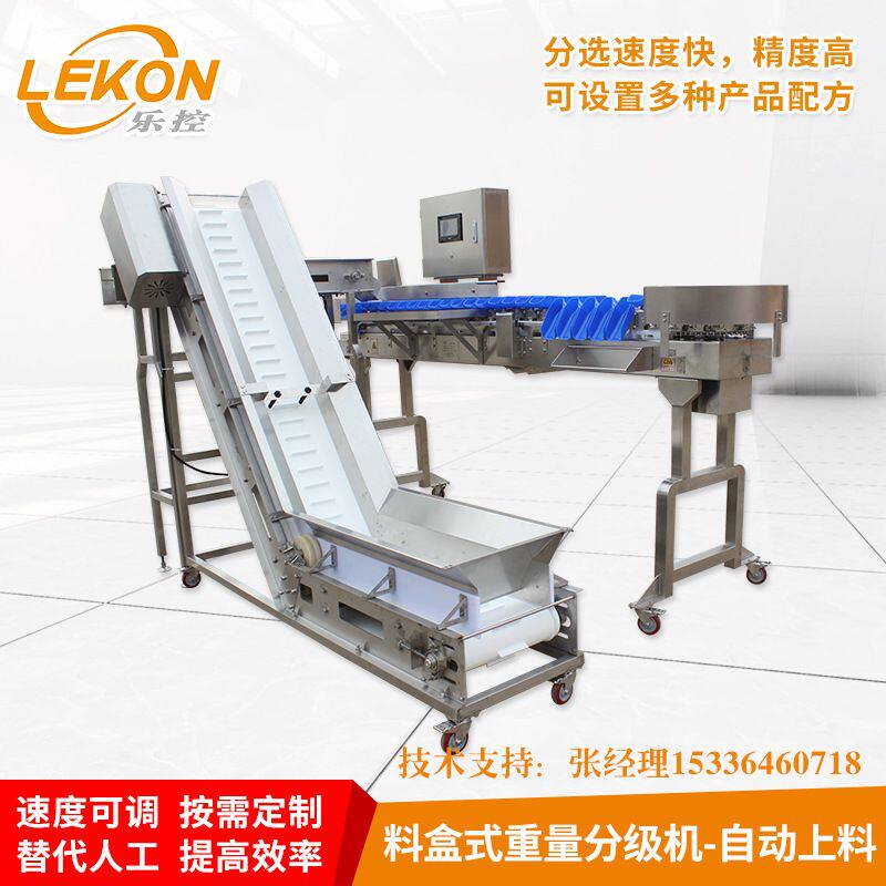 定制自动上料鸡鸭肉料盒式重量分选机猪蹄鲈鱼海蛎子水果分拣设备