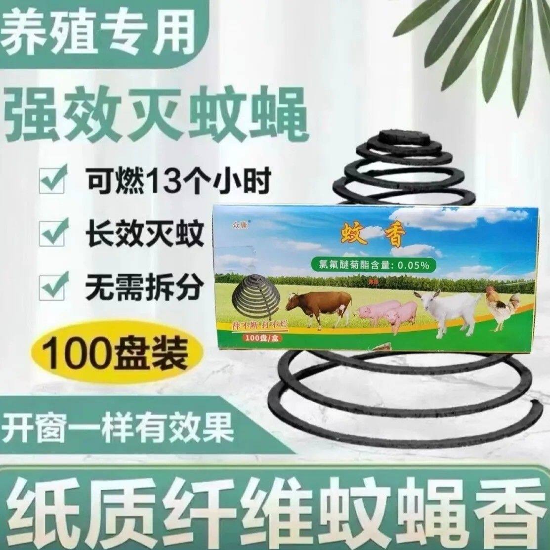 众康畜牧专用蚊香猪牛羊鸡鸭鹅通用蚊蝇双杀盘香免拆