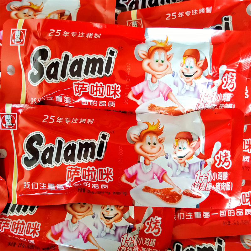 萨啦咪1+1鸡翅根28g烤制小鸡腿猪肉肠加鸡翅根温州特产零食小吃