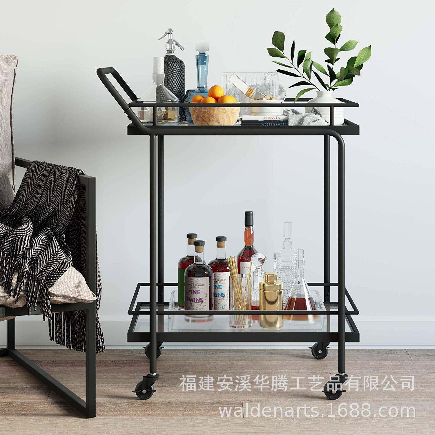 欧式铁艺小推车/滚动酒吧或推车茶或鸡尾酒,两层玻璃黑色