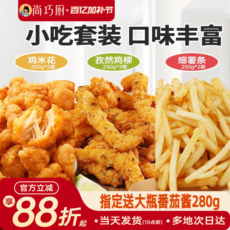 展艺鸡米花无骨鸡柳薯条炸货套装空气炸锅专用半成品食材炸类小吃
