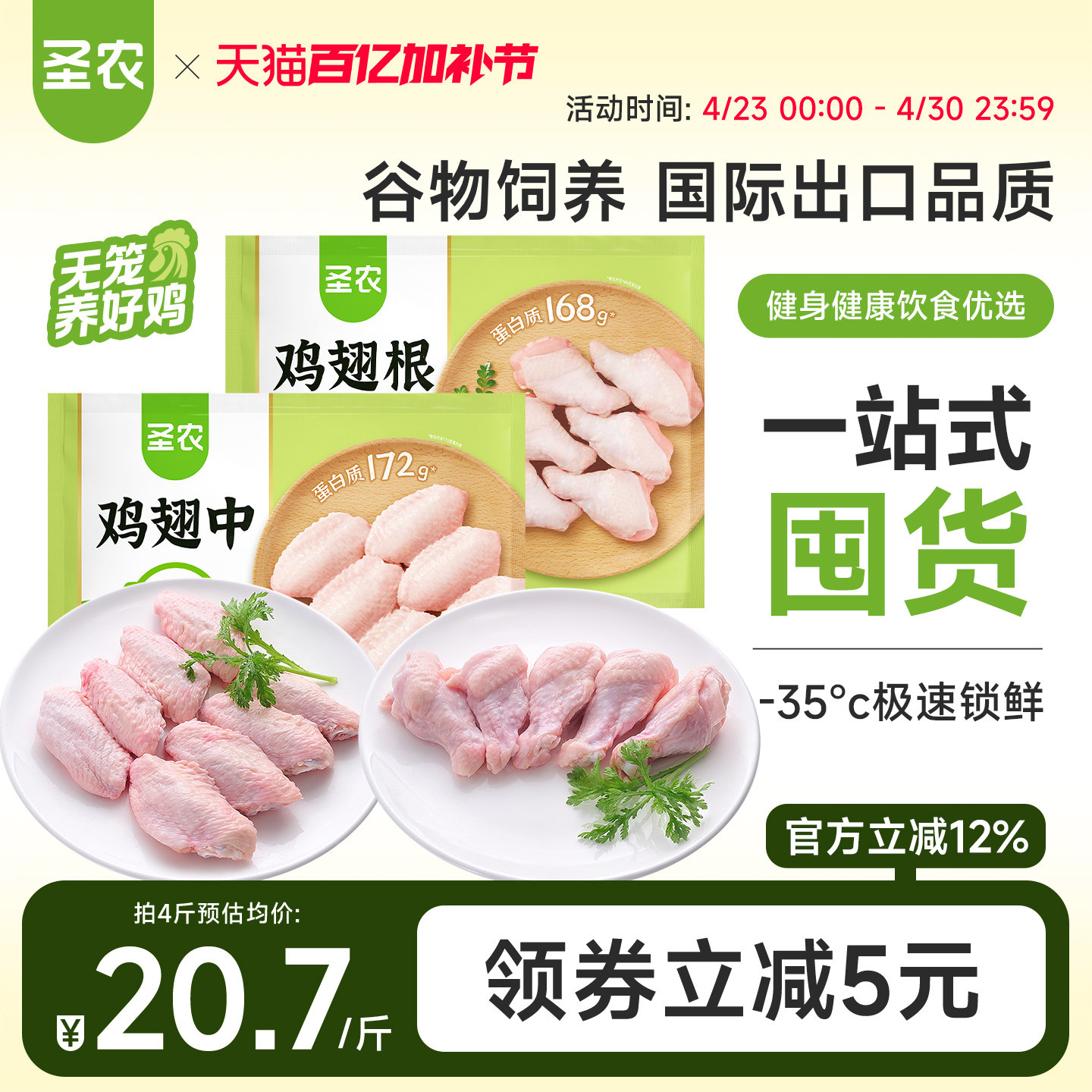 圣农养殖0激素新鲜冷冻鸡翅中翅2斤+翅根2斤生鲜冷冻食材家庭装