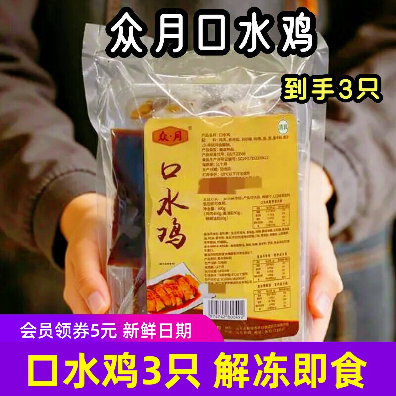 众月口水鸡凉菜鸡肉冷菜口水鸡速冻解冻即食香辣红油