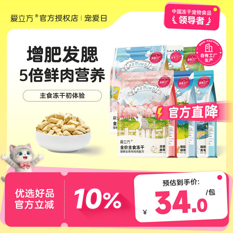 爱立方冻干猫主食猫粮鸡肉鸭肉牛肉鹌鹑猫咪零食生骨肉幼猫成猫粮