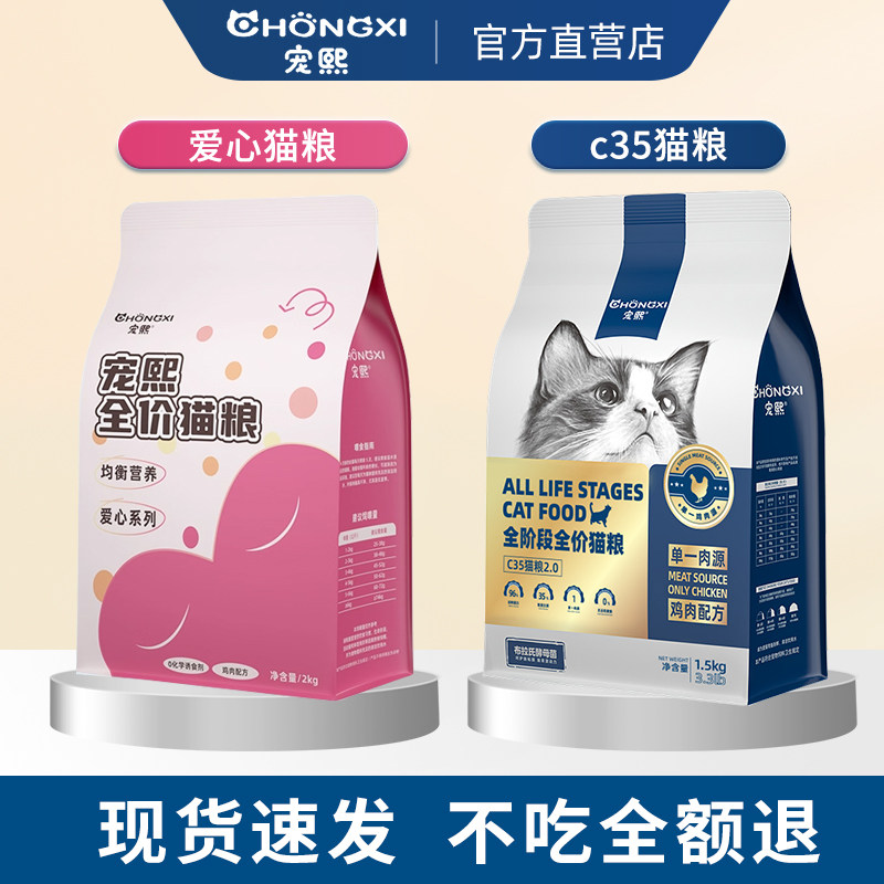 宠熙猫粮爱心粮全价通用成猫幼猫鸡肉配方2kg/1.5kg