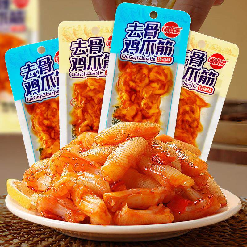 啃肯爽爽鸡爪筋酸辣无骨柠檬去骨鸡脚筋即食小吃网红追剧解馋零食