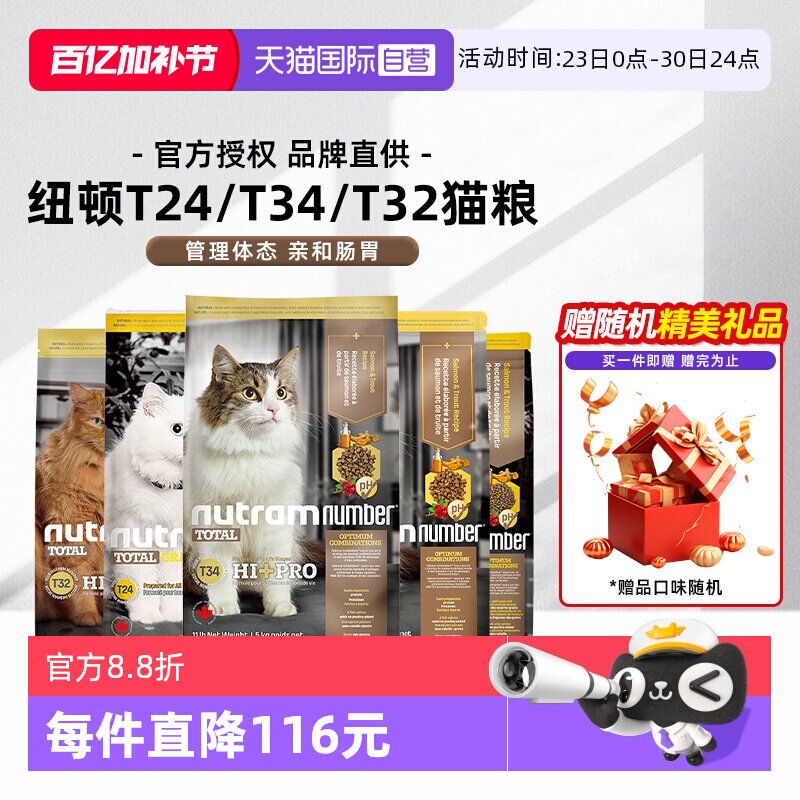 【自营】纽顿美国进口成幼猫粮T34T24T32鳟鱼鸡肉味全价【临期】