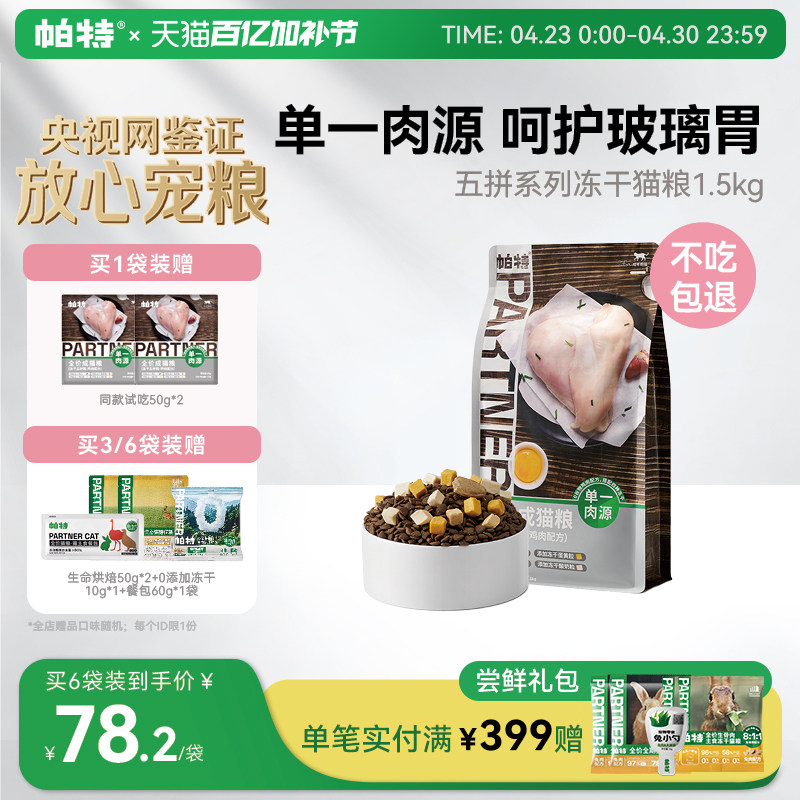 帕特旗舰店猫主粮冻干五拼鸡肉蛋黄酸奶鸡心幼猫成猫0诱无谷猫粮