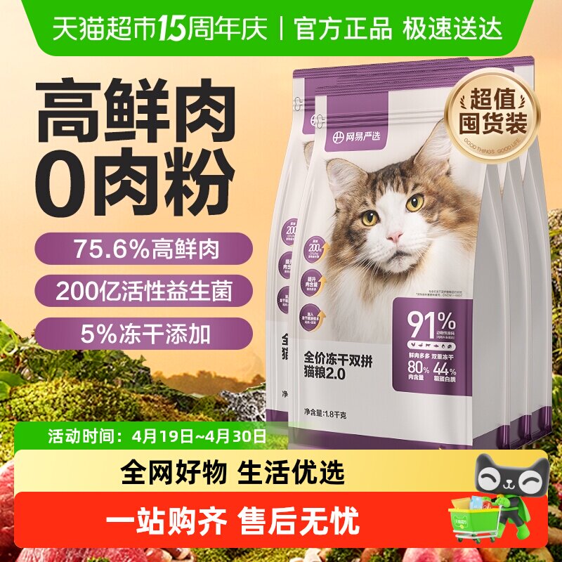 网易严选猫粮全价冻干双拼鸡肉兔肉猫粮无谷鲜肉成猫大规格囤货装
