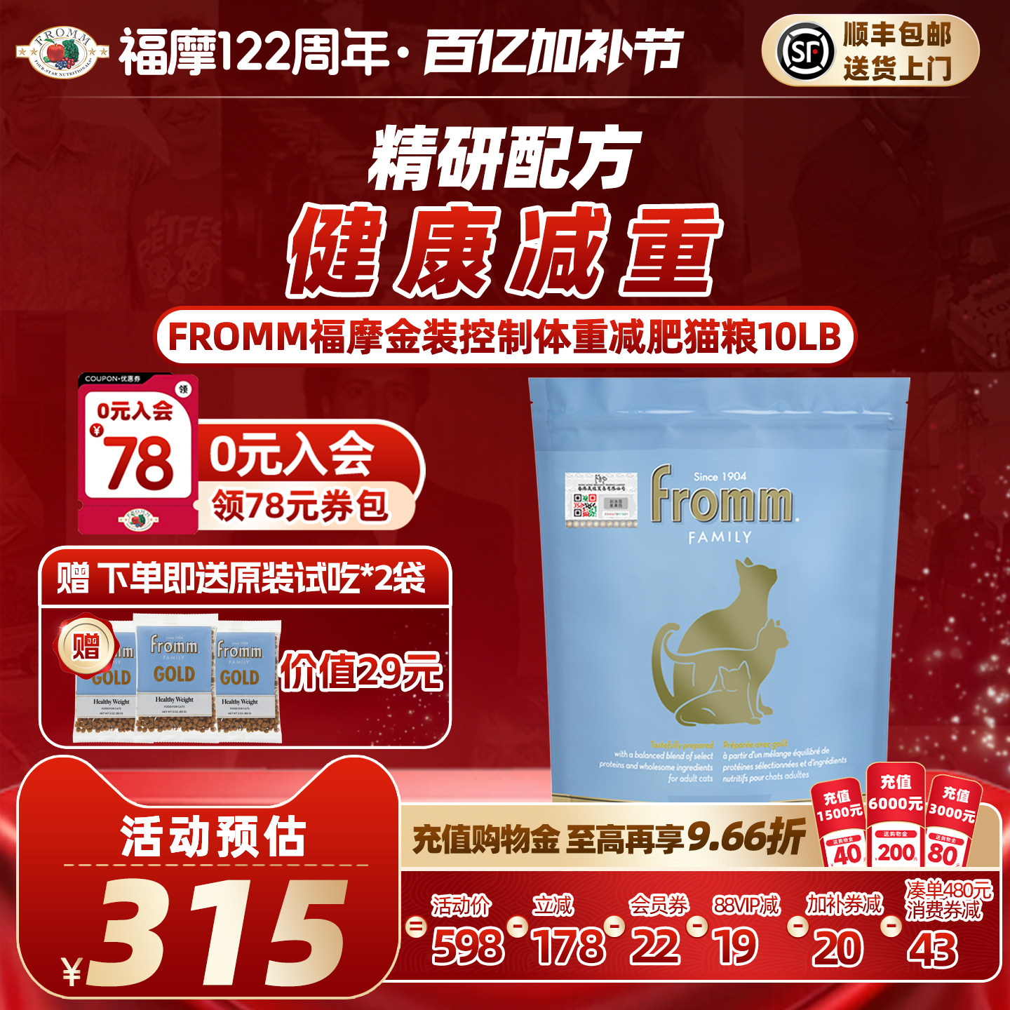 【官方旗舰店】Fromm福摩金装低脂体重控制瘦鸡肉减肥成猫粮10磅