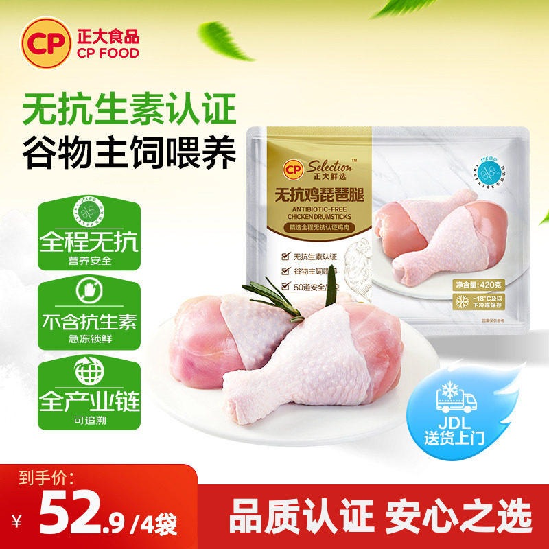 【正大官方】正大无抗琵琶腿鸡腿冷冻批发无抗生素琵琶腿420g/袋