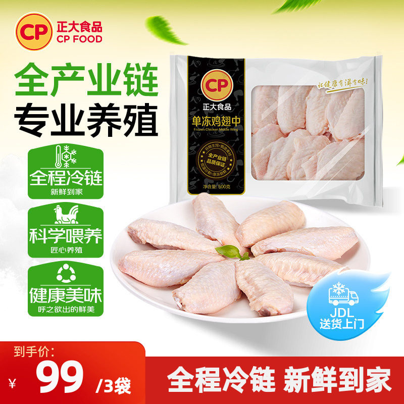 【正大官方】正大鸡翅中新鲜冷冻鸡翅中500g/袋正大食品鸡翅中