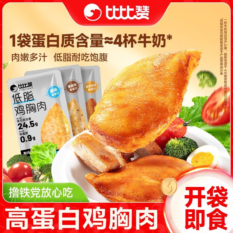 比比赞低脂鸡胸肉高蛋白休闲零食减低脂肪健身解馋轻食代餐即食健身房 黑椒50g+奥尔良50g+原味50g