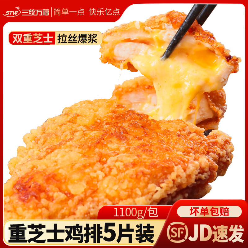 三统万福重芝士鸡排爆浆芝士鸡排脆皮大鸡排冷冻半成品油炸空气炸锅食材 双重芝士鸡排1.1kg【5片】