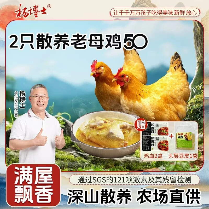 杨博士【老母鸡】皖南土鸡走地鸡煲汤整只生鲜鸡肉50周 单只净重900克 【50型主推】2只老母鸡(赠鸡血)