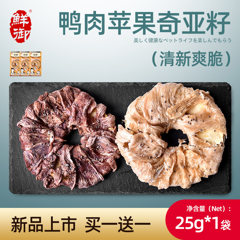 【鲜御】宠物狗狗零食 鸭肉苹果奇亚籽 狗狗磨牙鸡鸭肉零食25g/袋