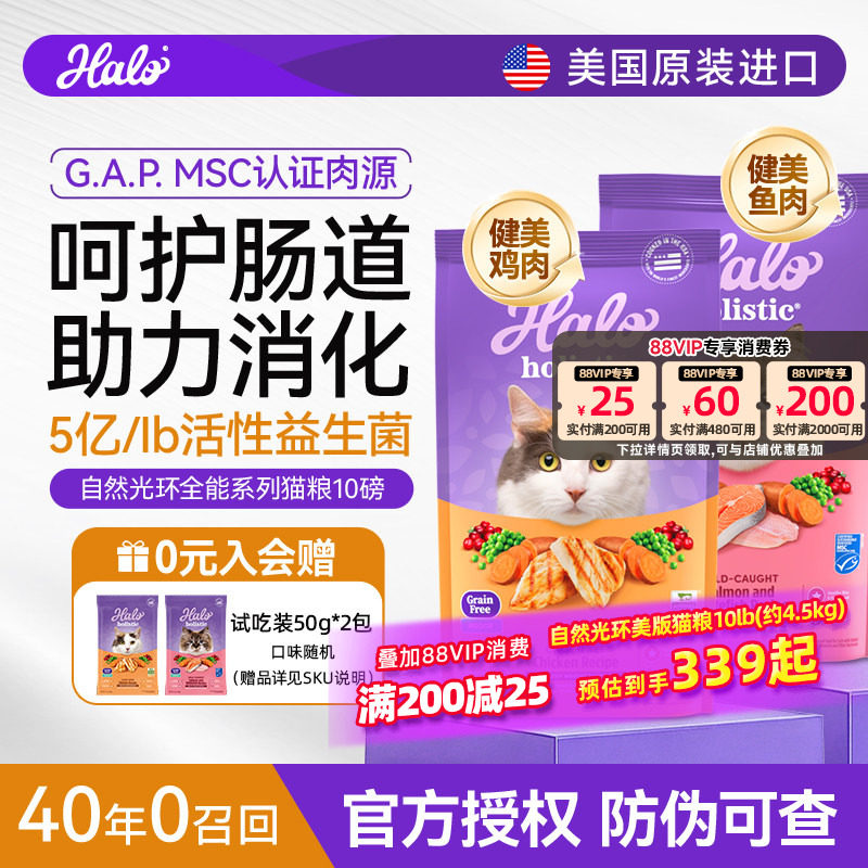 美国进口halo自然光环鲜肉粮健美成猫粮幼猫鸡肉鱼肉全能系列10磅
