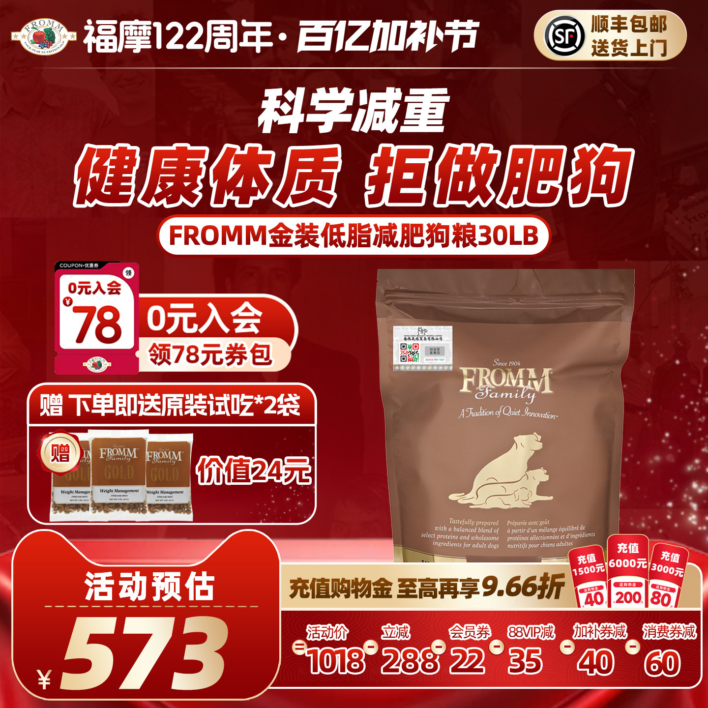 【官旗舰店】Fromm福摩金装低脂肪减肥控制体重火鸡成犬狗粮30磅