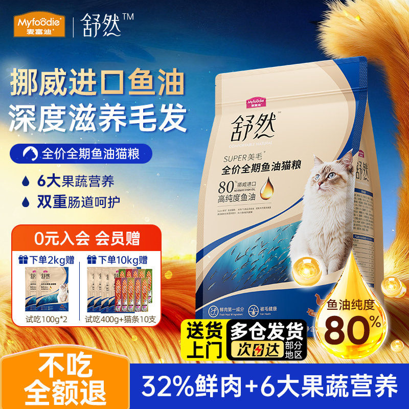 麦富迪猫粮舒然鱼油美毛鲜鸡肉三文鱼猫全价膨化粮官方旗舰店正品
