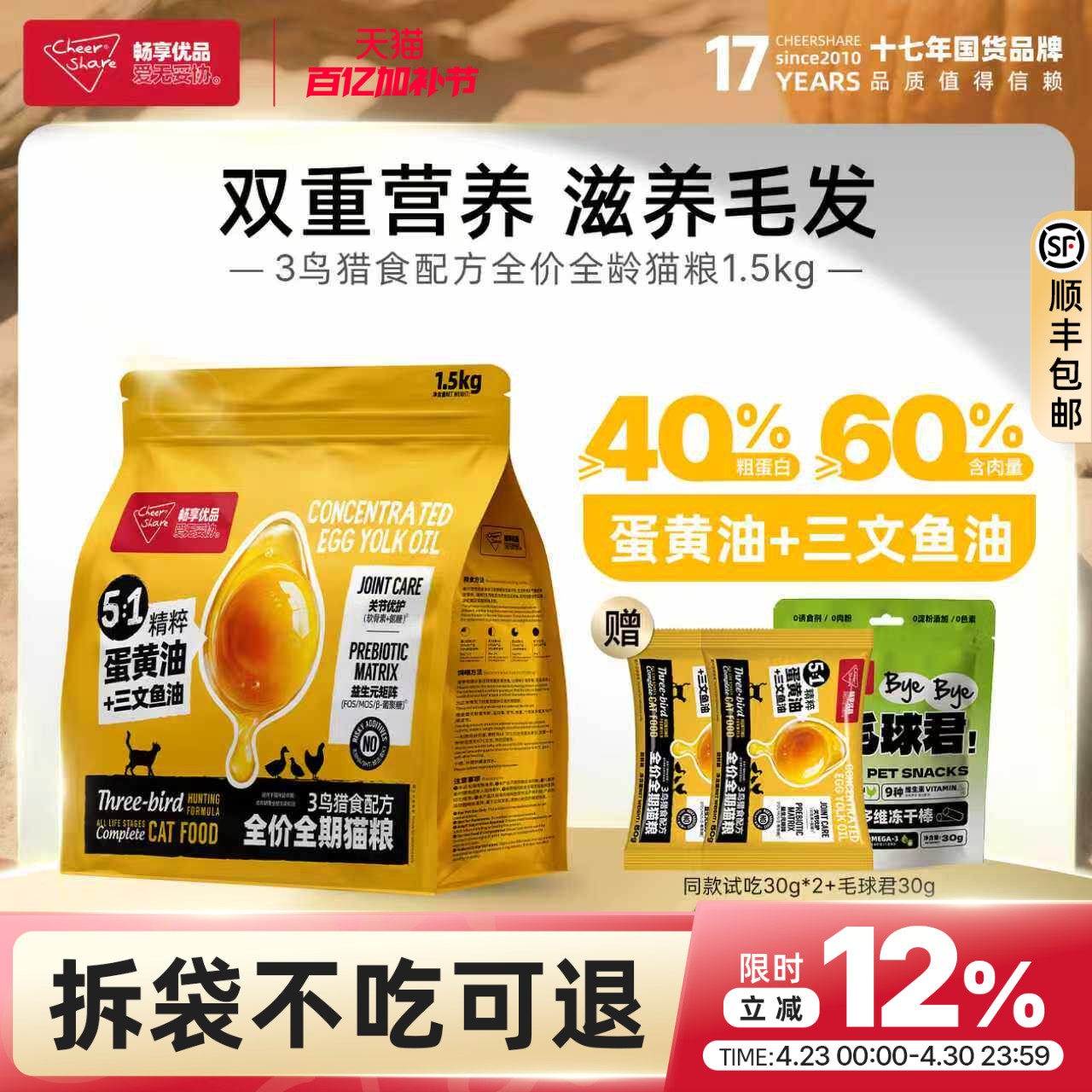 畅享优品全价全龄主食粮鸡肉鹌鹑鱼油蛋黄油营养幼猫成猫粮1.5kg
