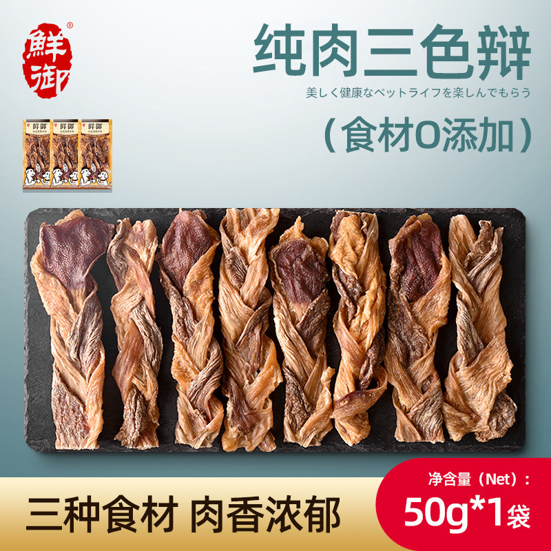 【鲜御】宠物狗狗零食 手工风干鸡肉鸭肉干鸭食管三色辩50g/袋