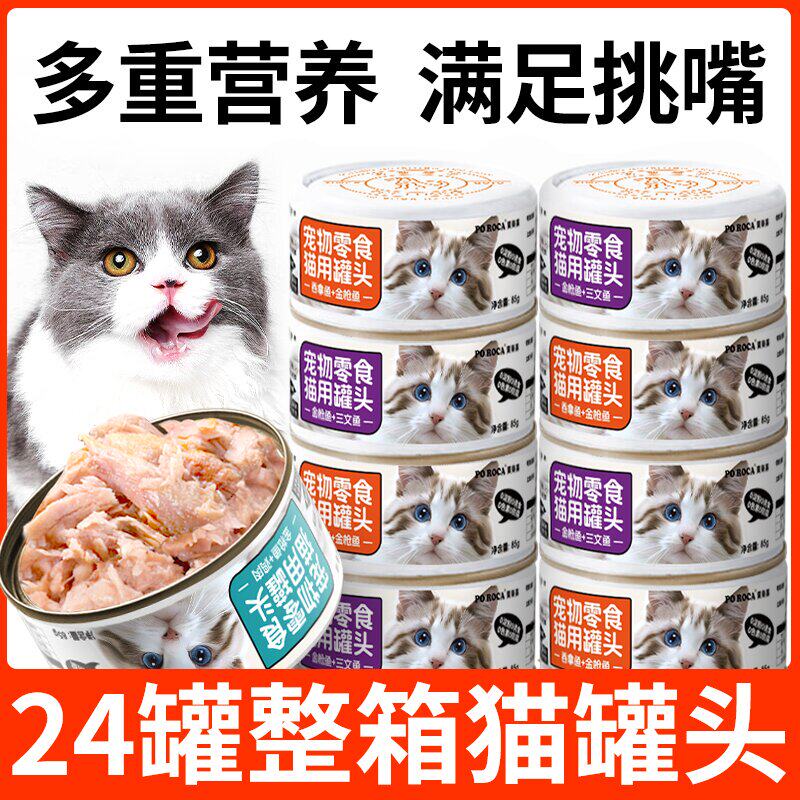 宝乐嘉白肉猫罐头85g*24罐金枪鱼吞拿三文鱼鸡肉双拼罐头猫零食
