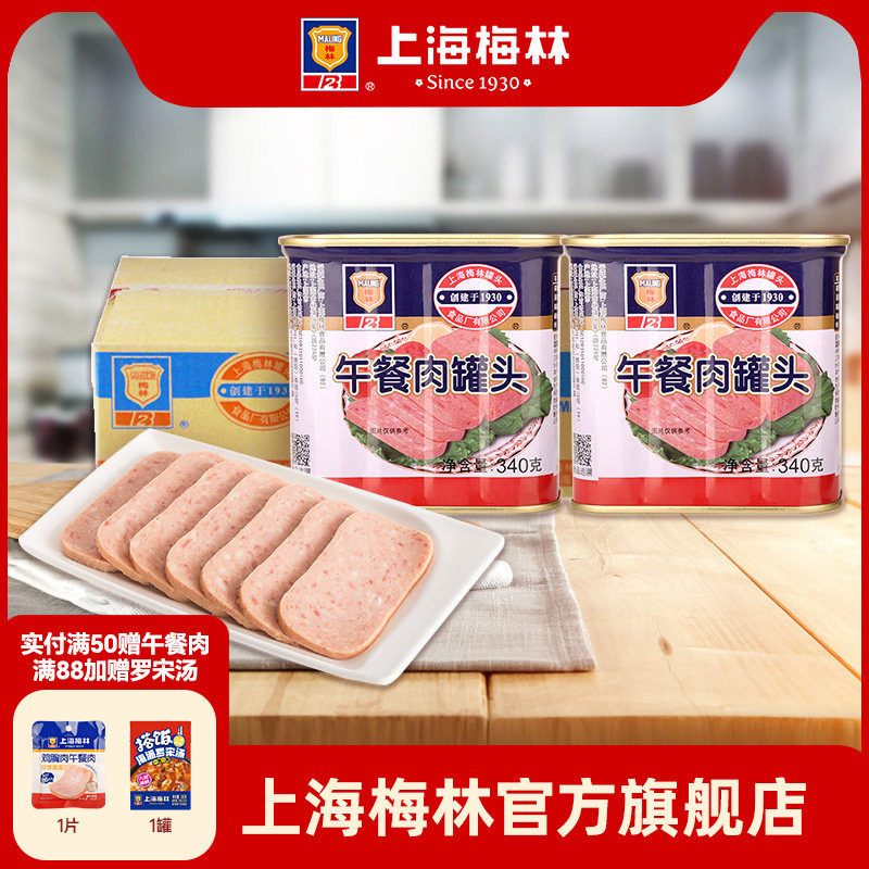 上海梅林午餐肉罐头340gx24 批发家庭储备应急储备食品不含鸡肉