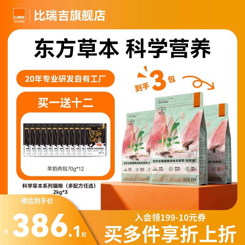 【超值囤货】比瑞吉车前子主食冻干鸡肉呵护泌尿道草本猫粮
