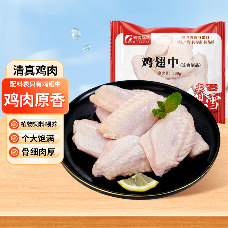 【秒】春雪食品鸡翅中新鲜冷冻生鲜食材鸡翅膀烧烤翅鸡中翅共4斤
