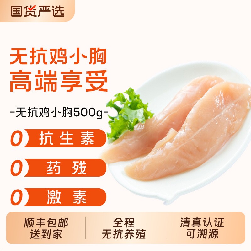 无抗鸡小胸肉 宝宝辅食推荐 鸡里脊肉健身代餐 新鲜健康轻食鸡肉