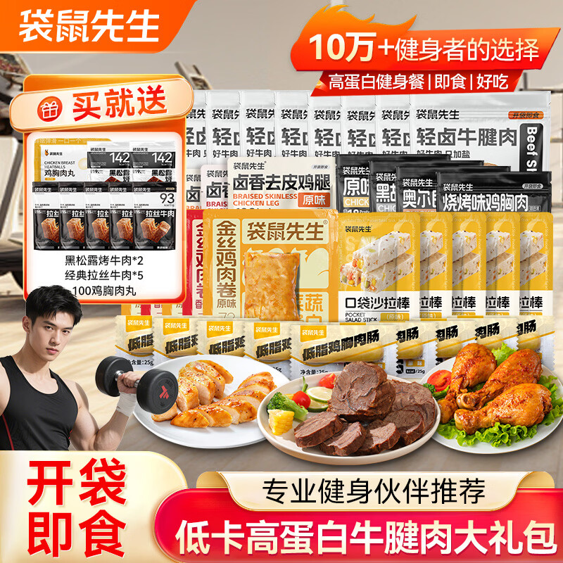 袋鼠先生低卡高蛋白牛腱肉健身代餐大礼包即食鸡胸肉牛肉零食 低卡高蛋白牛腱肉礼包3080g*1箱
