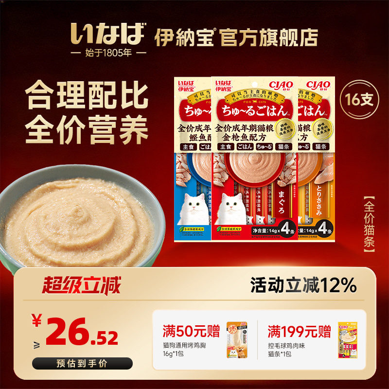 伊纳宝ciao猫条主食妙好啾噜湿粮全价营养猫咪罐头鸡肉成猫粮
