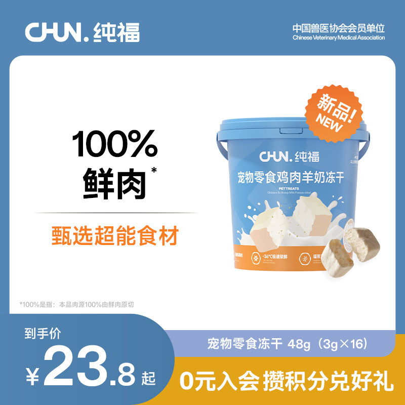 【新品上市】纯福猫冻干零食桶宠物猫咪鸡肉羊奶粉官方旗舰非主食